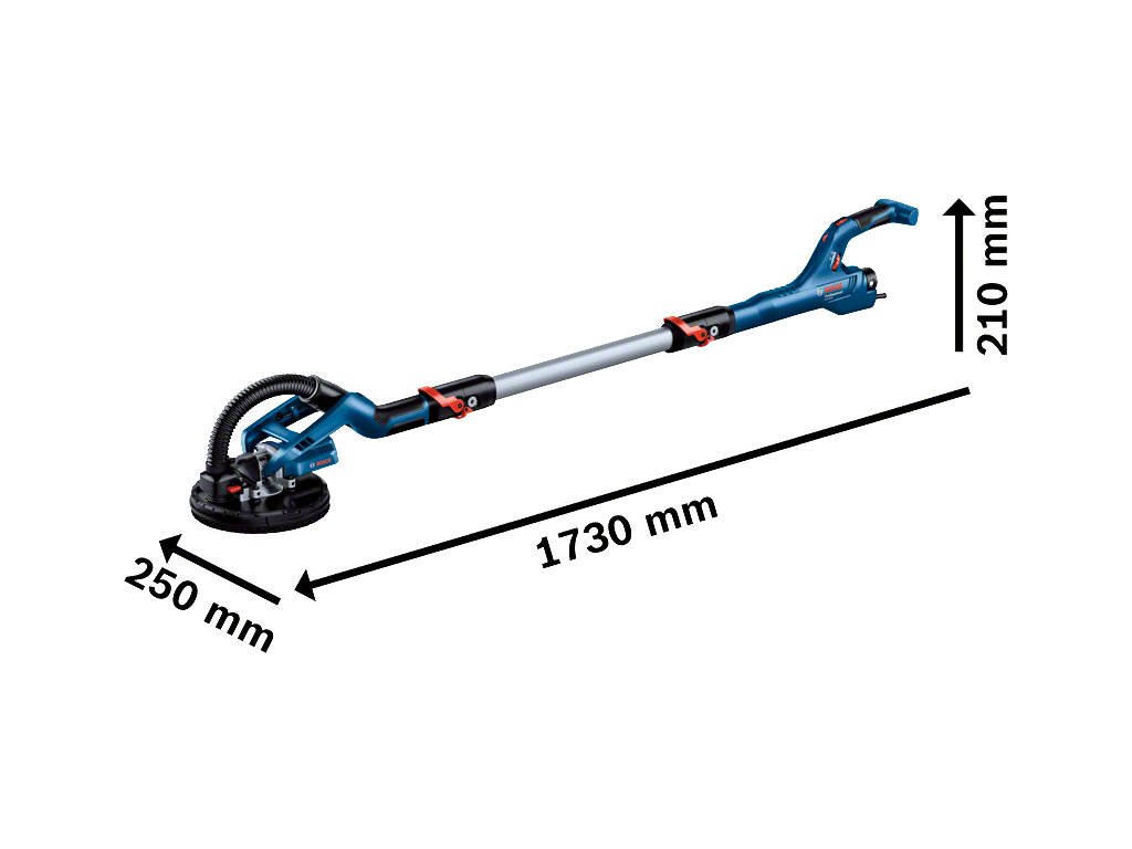 Bosch GTR 550 Professional bruska na sádrokarton 225 mm (550 W) je profesionální „žirafa“ na broušení stěn a stropů, navržená pro rychlé a rovnoměrné broušení velkých ploch při výstavbě a renovacích. Díky systému UltraFlexible Head se bezpracně pohybuje po stěnách i stropech a snižuje riziko poškození povrchu. Funkce přisátí ke stropu zvyšuje komfort a navozuje pocit nižší hmotnosti nářadí. Konstantní otáčky zajišťují vysoký úběr materiálu a rychlý postup práce, zatímco optimalizované proudění vzduchu podporuje broušení s minimem prachu (doporučeno s Bosch GAS 35L AFC). Segmentový kartáč s rychloupínáním umožňuje broušení těsně u stěny bez zdržování a ergonomická zahnutá rukojeť snižuje únavu při dlouhém používání.