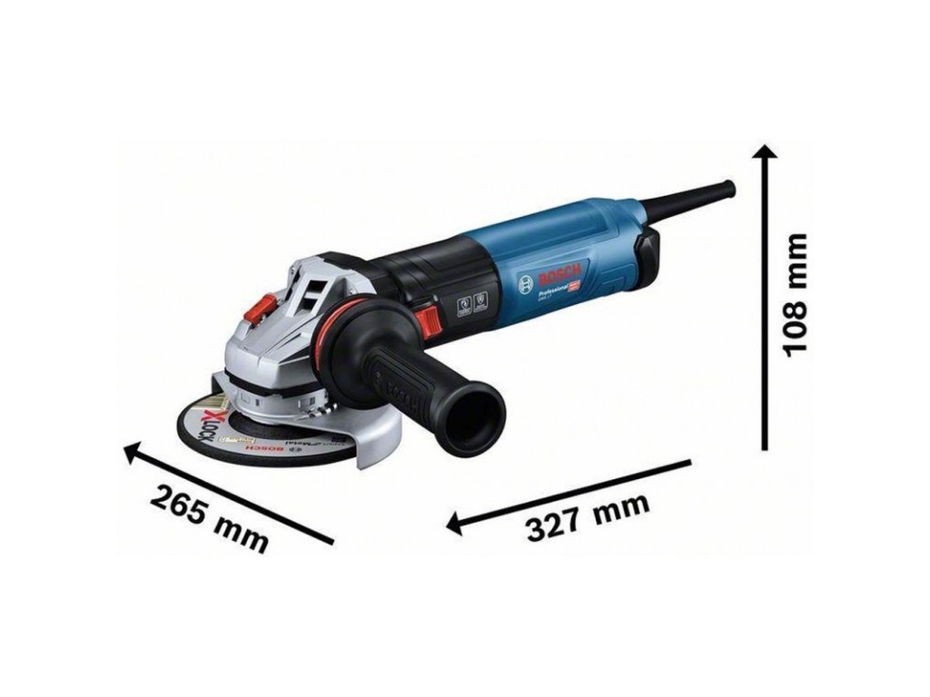 | Součást balení: | Ochranný kryt, Přídavná rukojeť s tlumením vibrací, Upínací matice, Upínací příruba, Kolíkový klíč, Nacvakávací ochranný kryt na řezání – kov, Filtr na prach |