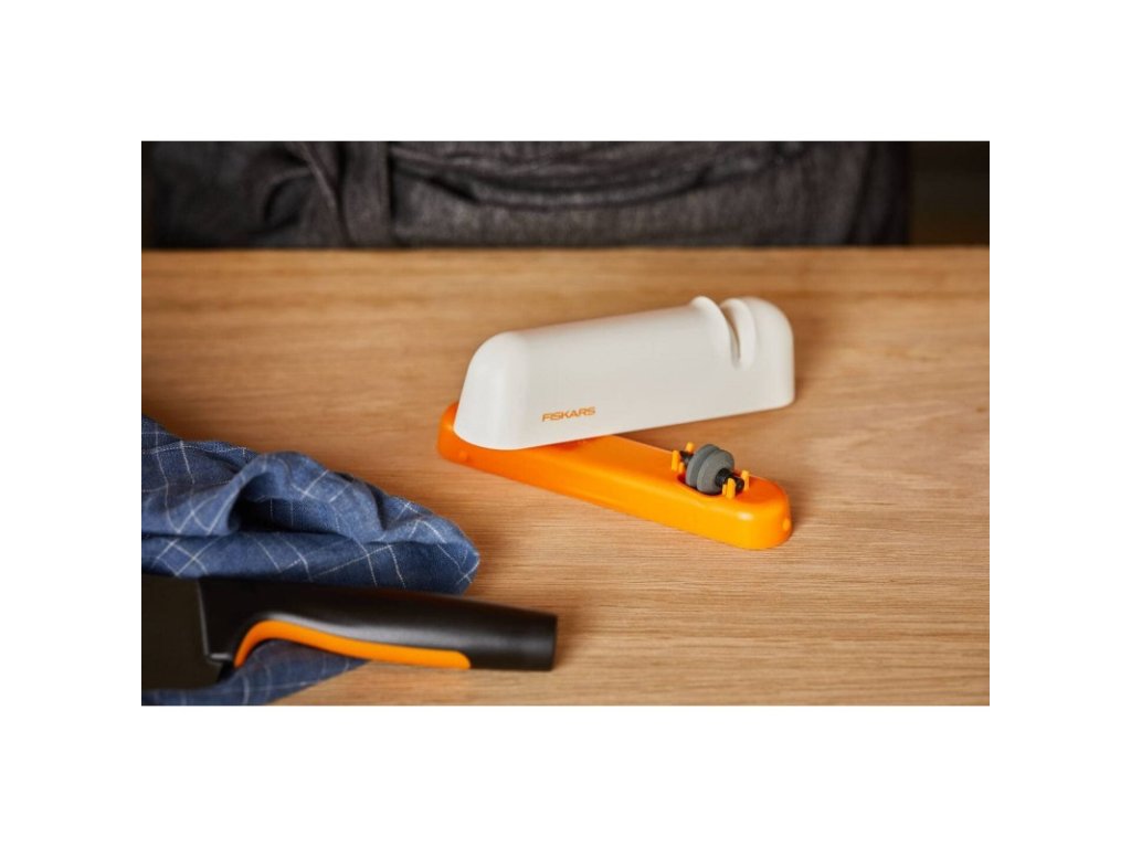 Bezpečný a snadno použitelný brousek na nože Fiskars Roll-Sharp je ideálním pomocníkem pro udržení vašich nožů dokonale ostrých. Díky keramickému brousku a neklouzavé základně je ostření rychlé, pohodlné a bezpečné. Navíc je vhodný pro nože s rovným i pilkovitým ostřím a lze jej mýt v myčce.
