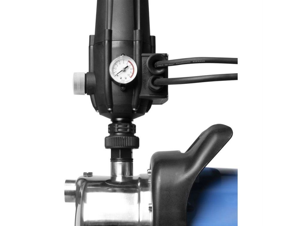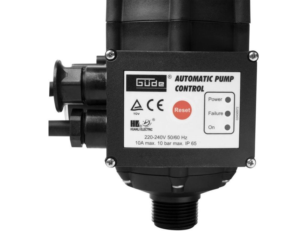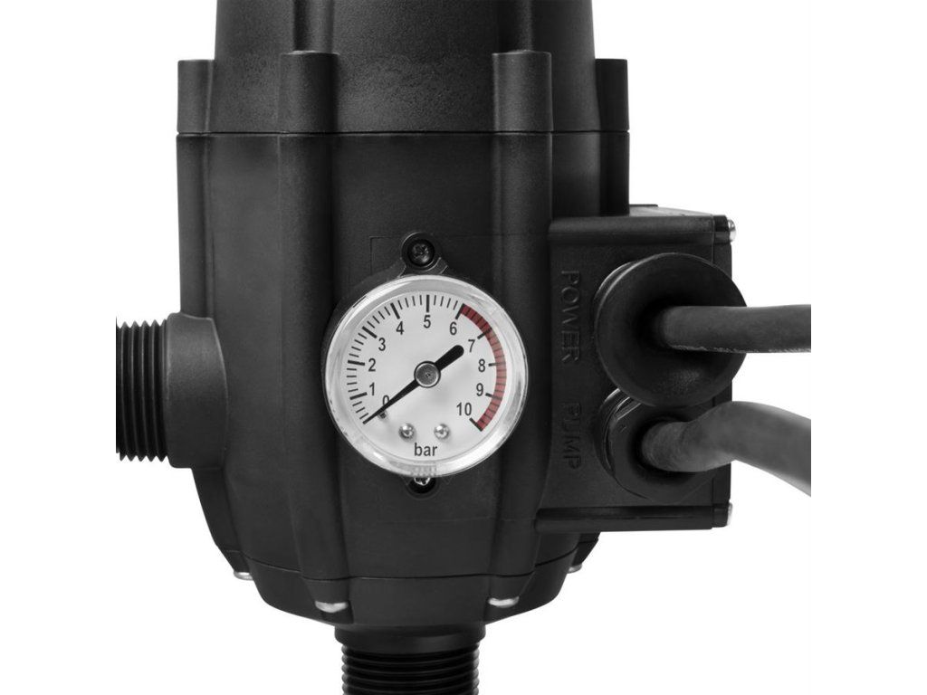 Multifunkční tlakový spínač (-> „hydrokontrola“), určený k montáži na výtlačnou větev zahradních čerpadel.Základní funkce: tlakový spínač (-> aktivace čerpadla při poklesu tlaku, vypnutí čerpadla po natlakování), ochrana před chodem nasucho (-> automatické vypnutí zahradního čerpadla odpojením od přívodu elektrického proudu) / funkce Restart pro jednoduchou aktivaci po vypnutí.