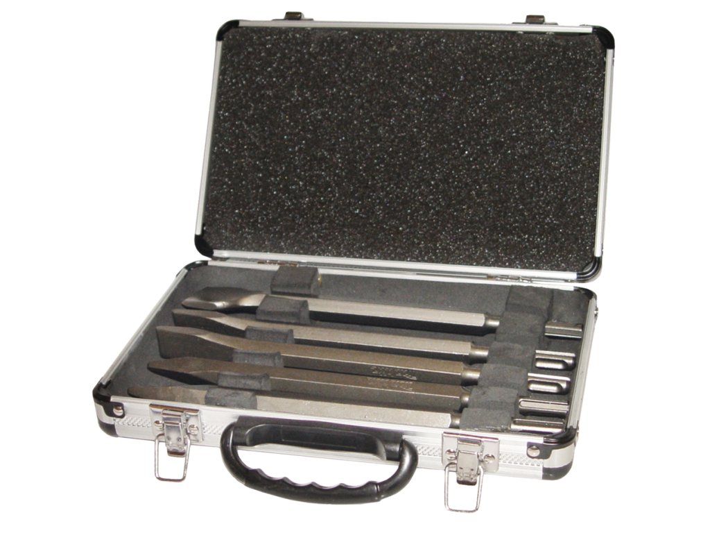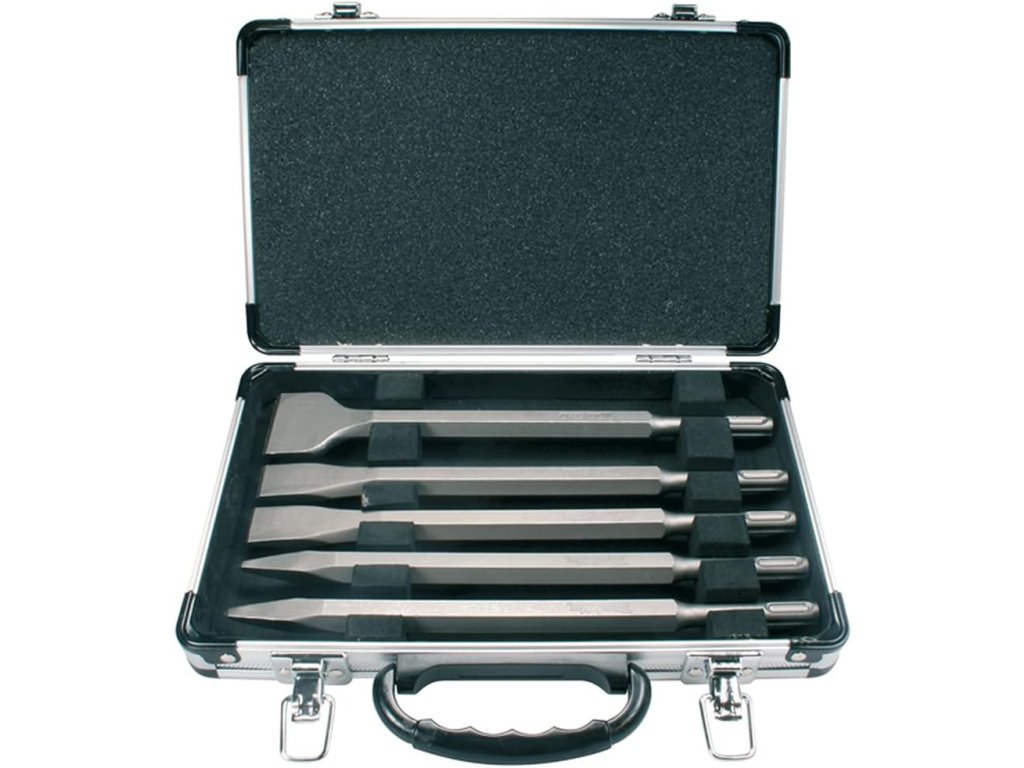 Sada sekáčů 5 ks SDS - plus v hliníkovém kufru (plochý sekáč 250 x 40, 2x plochý sekáč 250 x 20, 2x špičák 250 mm)Doplňkové parametry
