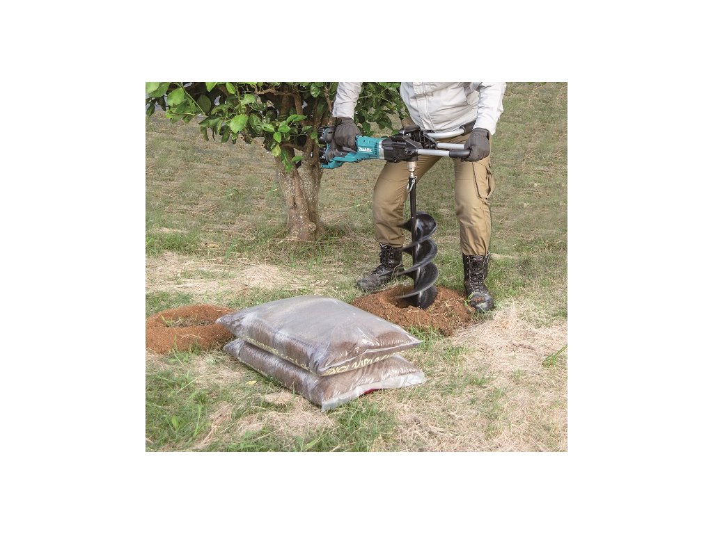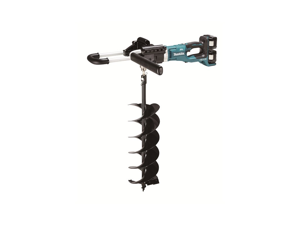 - Spolehlivý aku půdní vrták fungující na 2 akumulátory Li-ion 18V