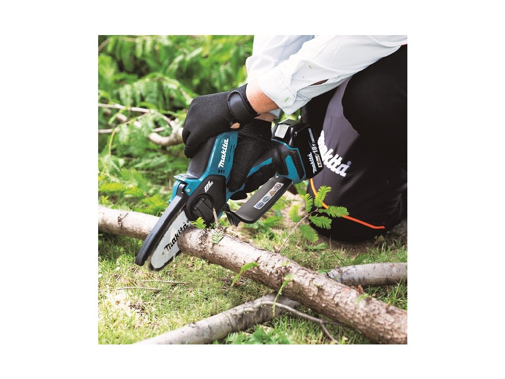 - Lehká a kompaktní prořezávací pila s lištou 100mm fungující na akumulátory Li-ion 18V