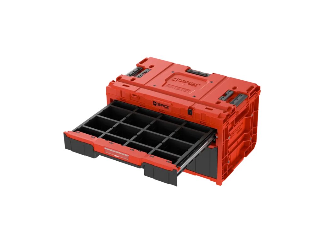 Plastový box s dvěma zásuvkami na kovových pojezdech, vybavený nastavitelnými přepážkami pro efektivní organizaci nářadí. Vyroben z odolného plastu RED ULTRA HD, odolává mechanickému poškození i nízkým teplotám. Modulární design umožňuje propojení s dalšími boxy systému Qbrick ONE, což zajišťuje flexibilitu a přizpůsobení podle potřeb uživatele. S objemem 50 litrů nabízí dostatek prostoru pro uložení nářadí a příslušenství.Doplňkové parametry