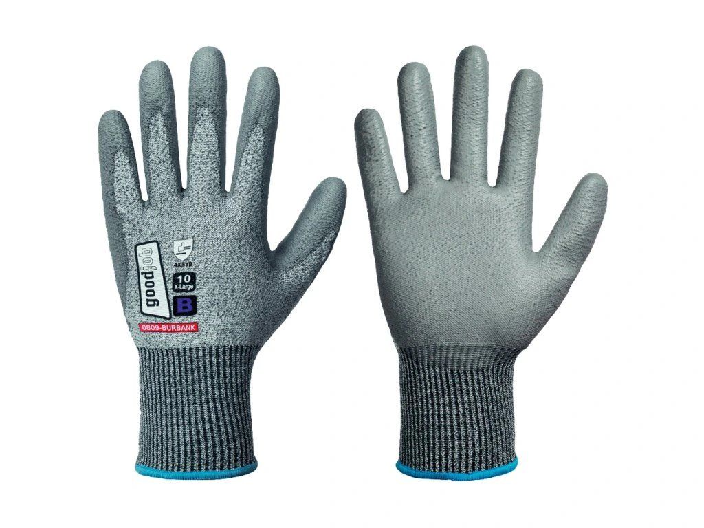 Rukavice BURBANK (146108V) jsou bezešvé protiřezné rukavice s odolností proti řezu stupeň B. Úplet 13G ze směsi 65% polyesteru, 18% skelného vlákna a 17% elastanu je povrstvený polyuretanem. Rukavice poskytují velmi dobrou hmatovou citlivost a bezpečný úchop i kluzkých nebo mastných předmětů. Splňují normy EN 21420, EN 388:4X41B a EN ISO 13997, jsou zařazeny do OOP kategorie II. Varianta s visačkou.